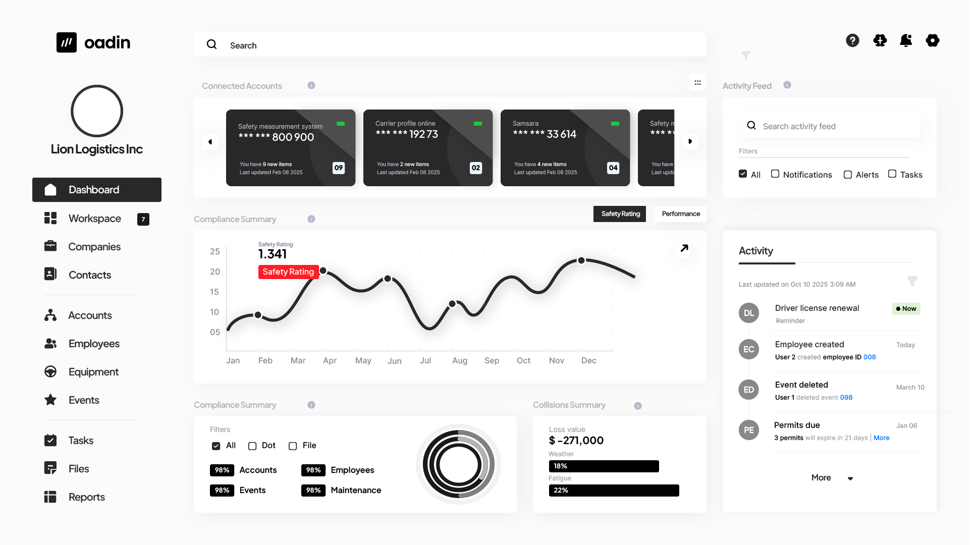 We used to lose track of when maintenance was due for our trucks all the time. Now oadin tracks all that for us plus we have all our invoiices organied